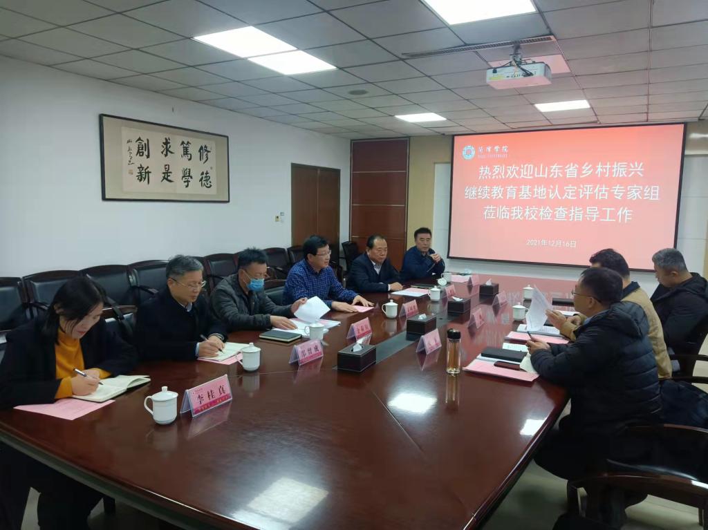 12月16日下午,省人社厅专家组一行来到公司,对省级乡村振兴继续教育基地进行认定评估,并在综合办公楼十楼会议室召开座谈会。公司党委副书记、经理姜同松,党委委员、副经理黄济民,菏泽市人力资源和社会保障局专技办副主任金荷钧,球盟会相关负责人参加会议。