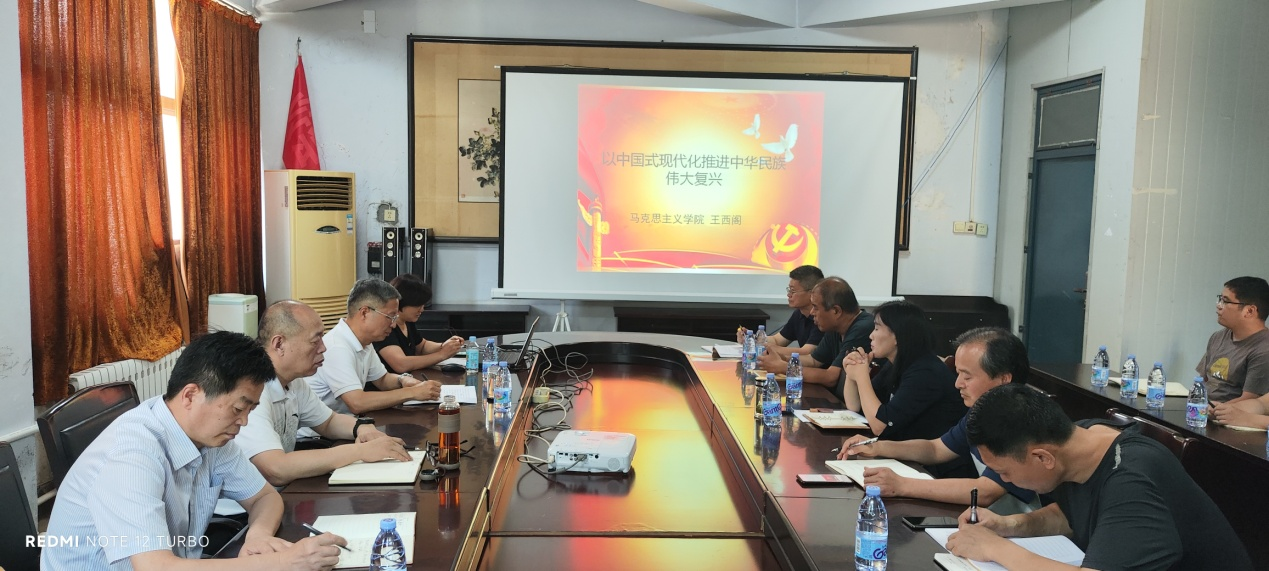 在宣讲会中,王西阁教授以《以中国式现代化推进中华民族伟大复兴》为题,从“中国现代化的性质、中国式现代化具有各国现代化的共性、中国式现代化的中国特色”三个方面对中国式现代化进行全面系统的阐述。为帮助全体党员更加深刻理解中国式现代化的中国特色、本质要求、战略安排、目标愿景、重大原则和为什么必须坚持社会主义的中国式现代化提供了一次非常有益的学习机会,使大家对中国式现代化有了更加深刻和清晰的认知。