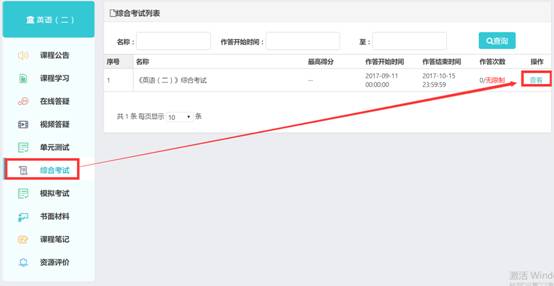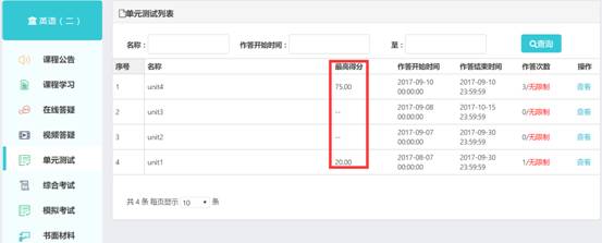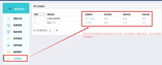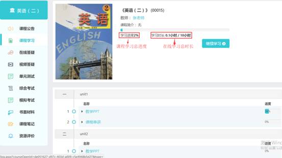 ① 查看“在线学习”“单元测试”“综合考试”“模拟考试”的完成情况。