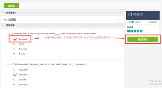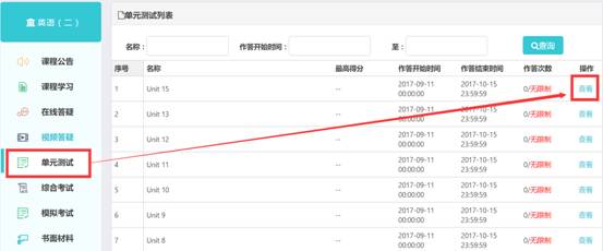 7. 单元测试。在规定的答题时间内答卷并提交试卷。