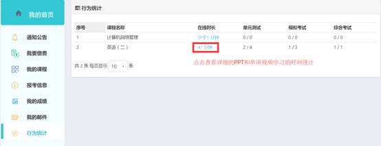 ② 查看学习PPT和串讲视频的时间记录。详细记录了每一次的学习时间和学习时长。