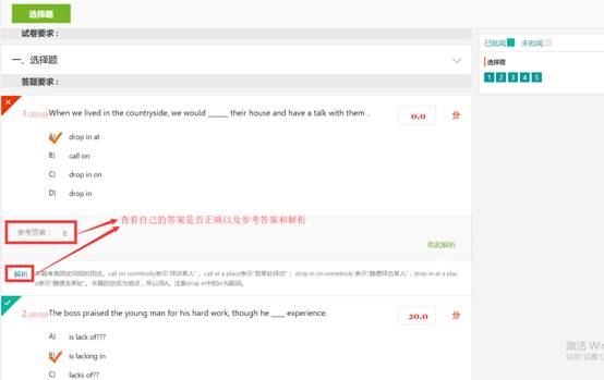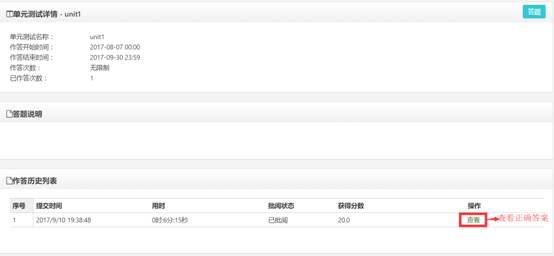 ④ 查看正确答案。每次提交的试卷都会有记录,可以点击查看正确答案