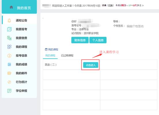 3. 登录成功后,进入员工空间主页,“点击进入”即可进入课程学习页面。