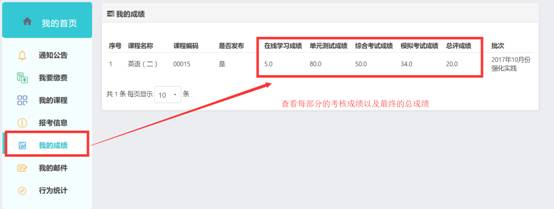 12. 查看考核成绩。进入员工空间首页,点击“我的成绩”即可查看课程的考核成绩。